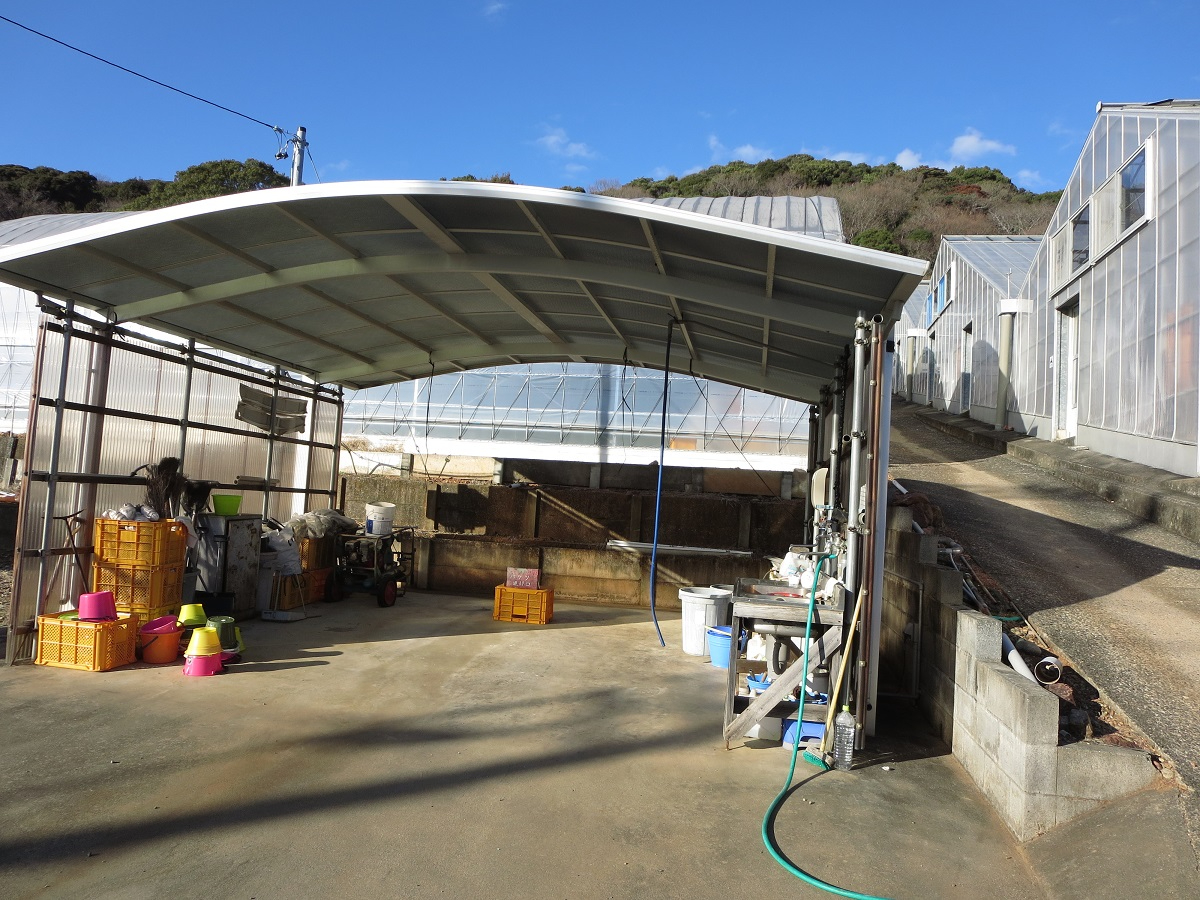 久能山のように、山の斜面を利用した石垣でいちごを作っています。