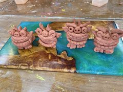 家族で利用しました。とても不器用なので、はじめてのシーサー作り上手に作れるのかな…と心配しましたが、一緒に順序よく教えてくれて、また最後のアレンジなどもそれぞれ思い想いに作ることができて、とても楽しかったです。帰る日でしたが、持ち帰る事もできていい経験が出来ました。