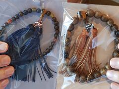 夫婦共に全くの無知で、サンプルを参考にしながら直感だけで選んでいったのですが、(後で気付いたら石によって意味合いなど書いてありました)イメージ通りの素敵な数珠が出来上がり、大満足でした。
