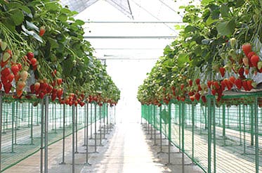 かがまずに立ったままイチゴ狩り、ベビーカー、車椅子でも楽々イチゴ狩りできます。