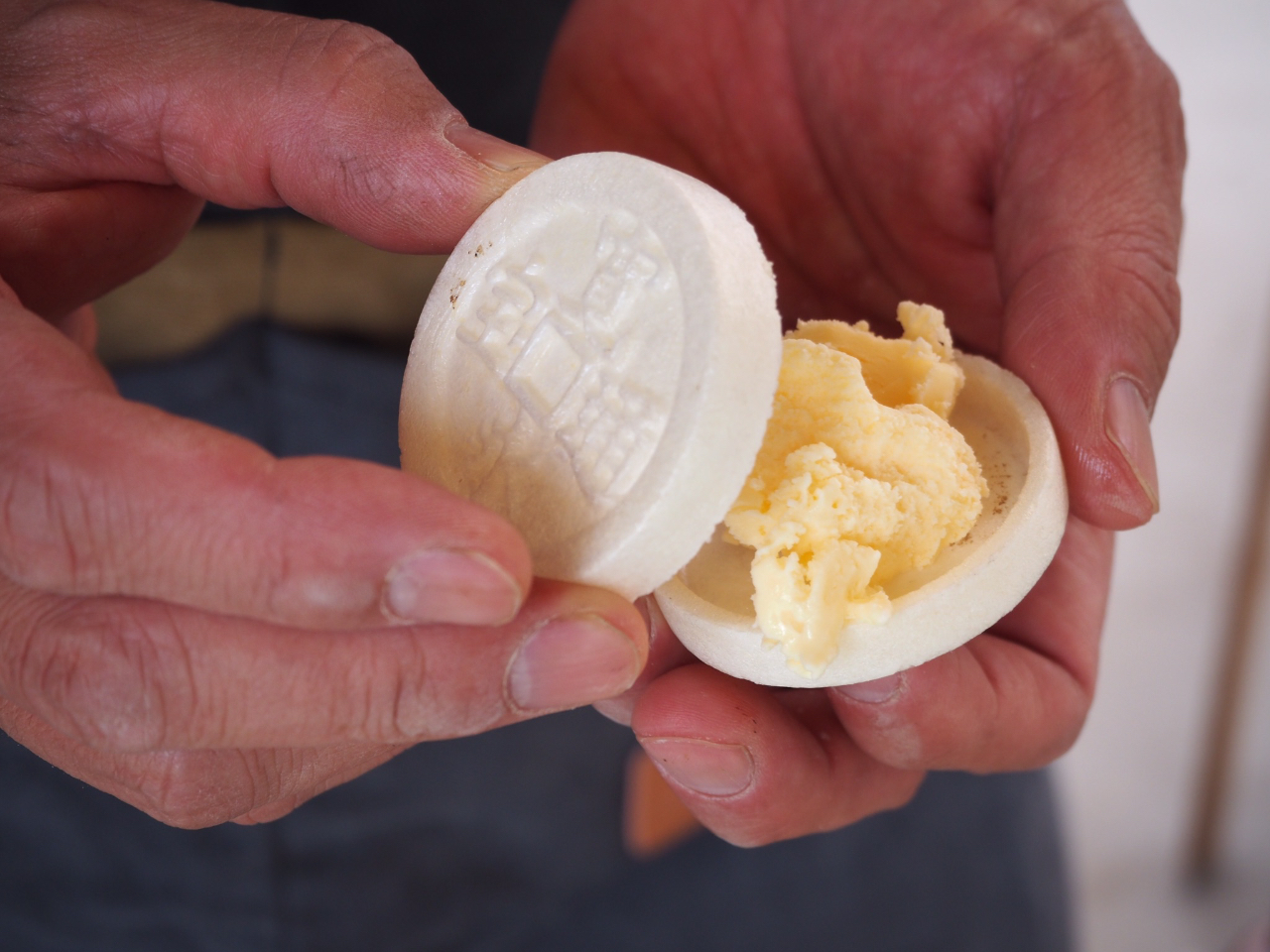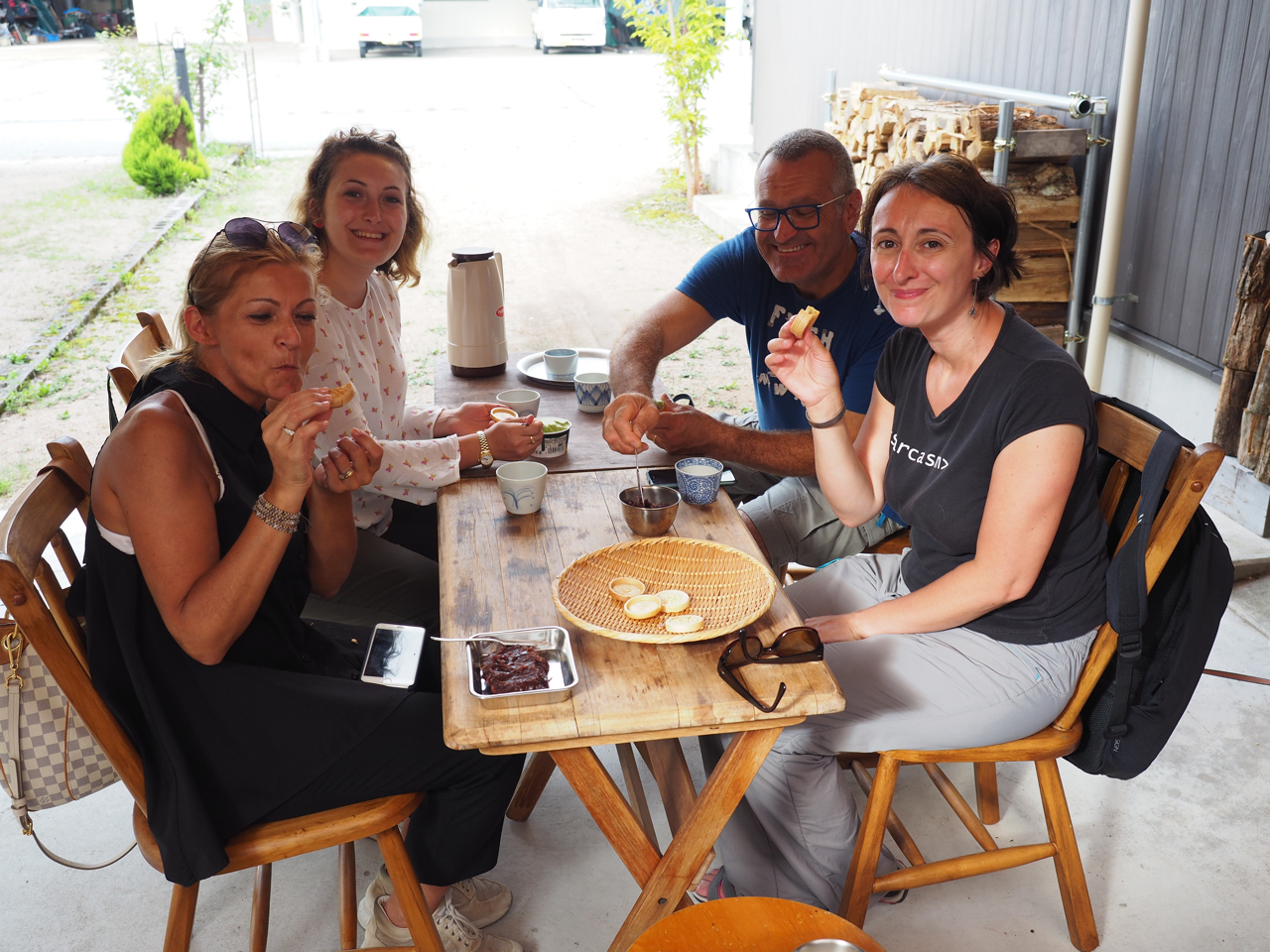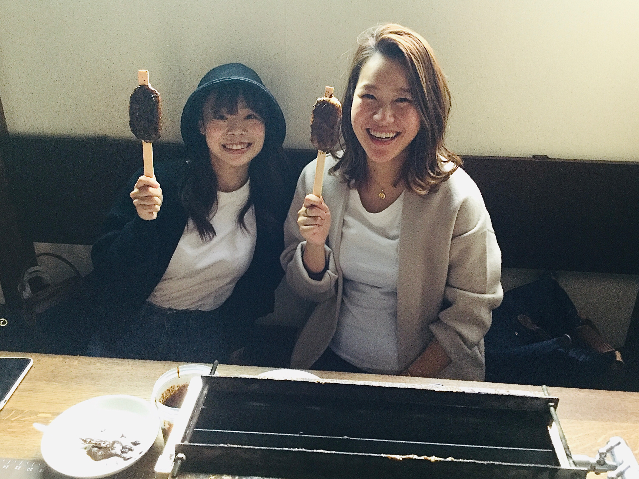 飛騨特産のアブラエ(荏胡麻)たれの五平餅と、寛永通宝モナカ作りの体験です。