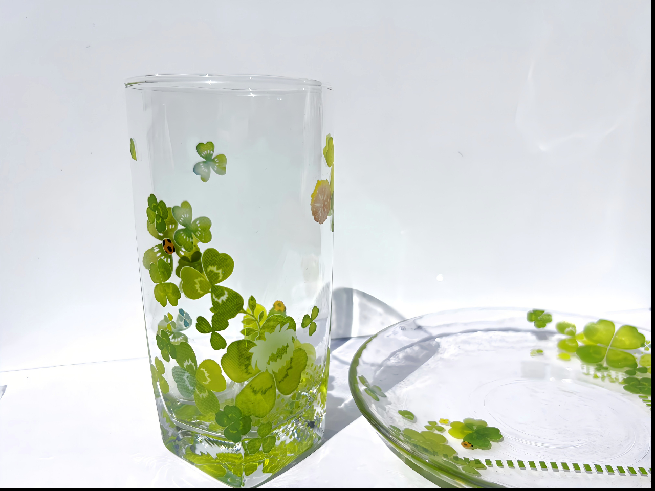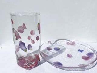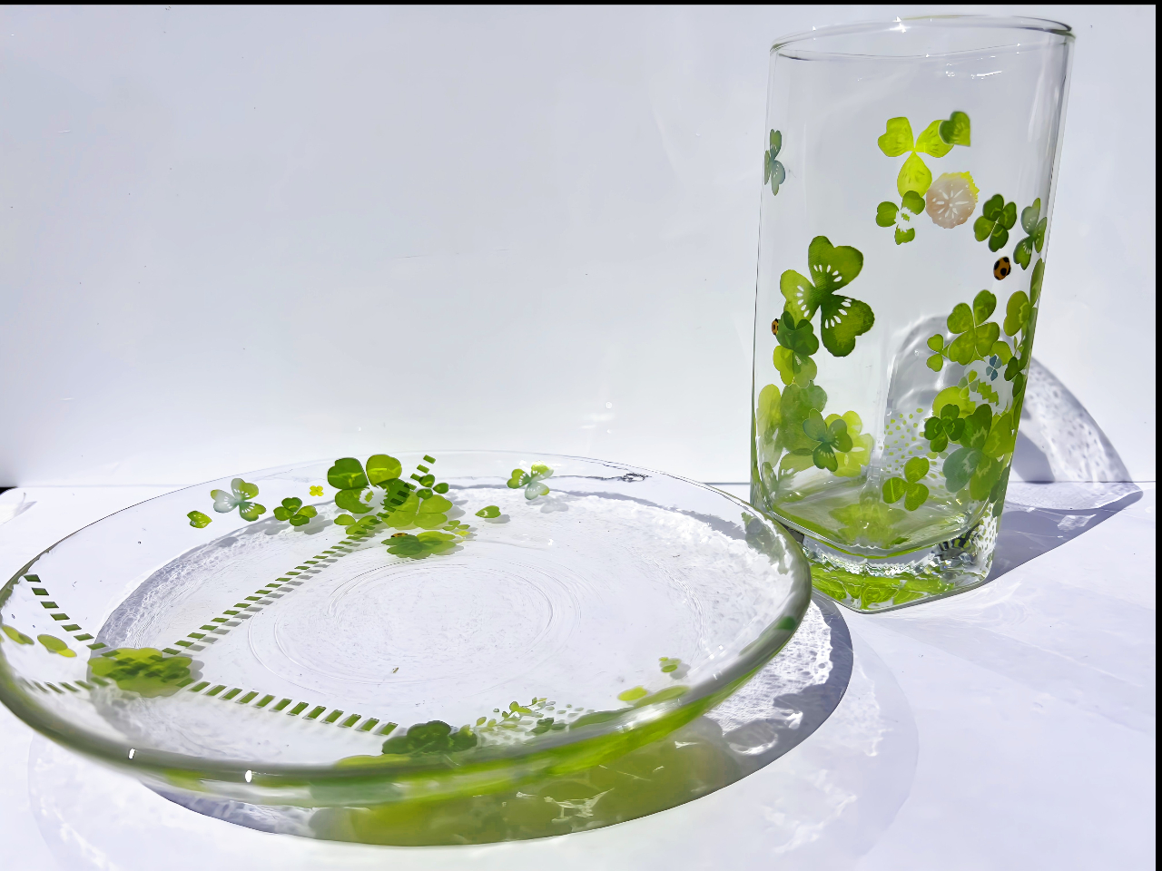 ◆ガラス皿(18p)とグラスに転写紙を貼って窯で焼成し、オリジナル食器を作るプラン♪