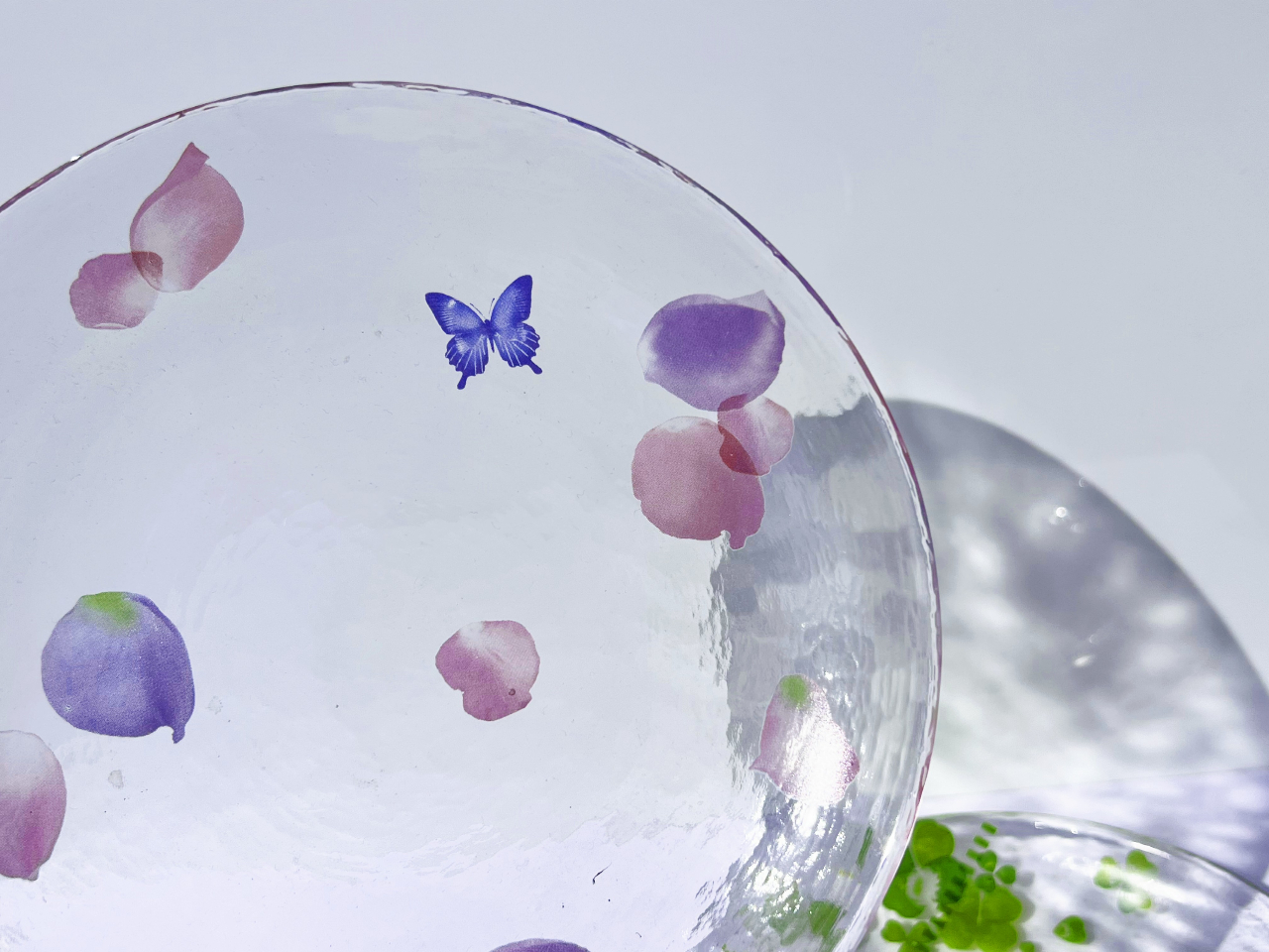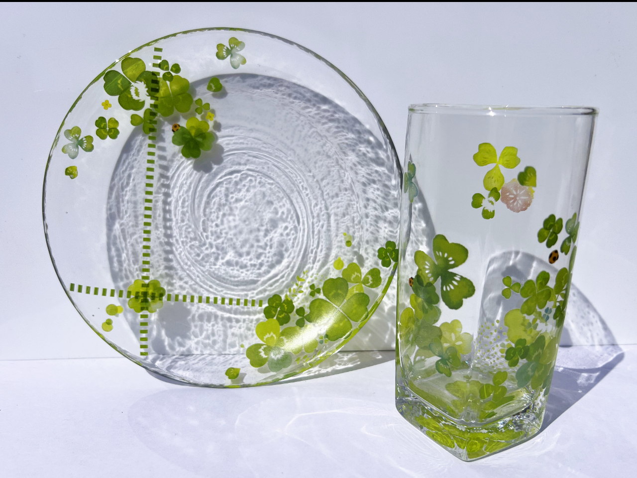 ◆ガラス皿(18p)とグラスに転写紙を貼って窯で焼成し、オリジナル食器を作るプラン♪