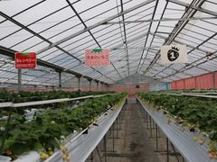 立ったままイチゴ狩りが出来、通路に品種名が書いてあるので助かります。