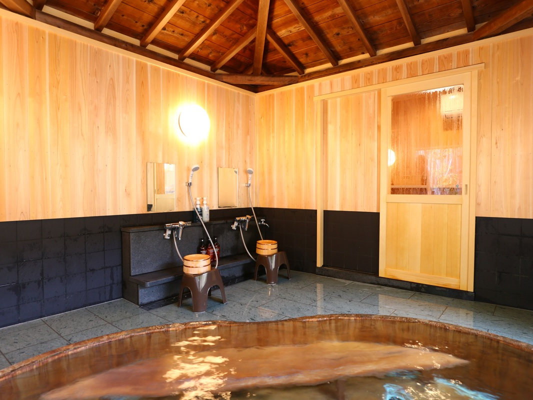 グループでもゆったり♪大きな檜樽の貸切風呂