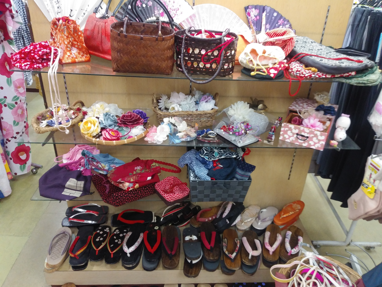 小物類、下駄、髪飾り、巾着、無料で貸し出し。プランに含まれます。