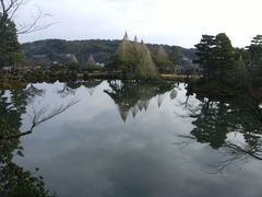 大きく広がる松の枝を支えるため施された放射状の雪吊りが幾重にも重なって、独特の景観をつくっています。これで雪があれば最高でしたが、あいにく訪れた大晦日には雪はまったくありませんでした。