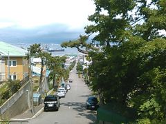 旧ロシア領事館に行くために登ったこの坂。建物のちょい手前で自転車を置き、そこから歩いていきました。さらに山上大神宮まで登るのはプロ野球選手のキャンプにお勧めしたいくらいの急な坂です。