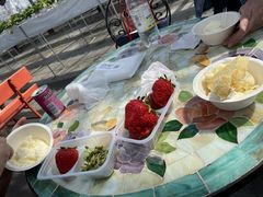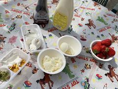 時間が長く、座って食べれる椅子があるためゆっくり食べられる。時間で交代制だが、十分な時間があるため、満足して終えられる。いちごに好きなようにトッピングができるため子どもが飽きずにいられた。(1.2歳)地面が滑りやすいところがあるため、スニーカーがいい!トイレの鍵が不安だが、トイレは一つある。おススメです。