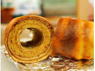 ◎森の中で焼いた、温かいバウムクーヘンは格別です!