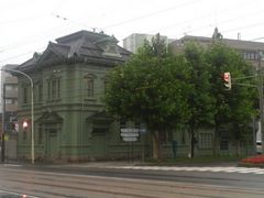 基坂を眺めるとこのペパーミントグリーンを始め、イエロー、ブルーグレーと爽やかでカラフルな街並みが味わえます。市電通りに面していて、そのスタートを切るのがこの建物です。洋風建築のよさとそこかしこに日本風を取り入れていて味わい深い建物です。初代相馬氏は商才豊かな豪商で旧函館区公会堂建設は、私財を寄付し建てられた方です。この社屋も私邸も見事です。