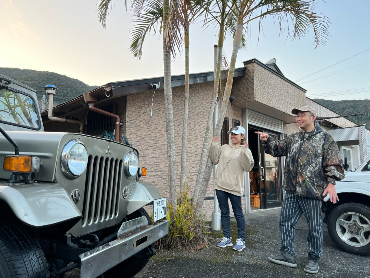 店舗は入口は「ジープ車両」「電光看板」「のぼり」が目印です!目の前無料駐車スペースになってます。