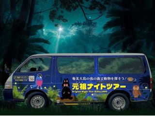 快適送迎付きナイトツアー生き物が見やすい横開き窓の車両で行くアマミノクロウサギ観察ナイトツアー。