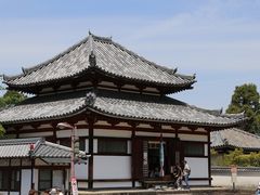 二月堂・三月堂なども立ち並ぶエリアにある小さなお堂。本来の名前は「三昧堂」で、毎年四月になると法華三昧会と呼ばれる法要が執り行われることから、次第に「四月堂」という通称で呼ばれるようにもなったそうな。本尊の十一面観音立像は奈良市山間部にあった「桃尾寺」の本尊で、廃寺に伴い二月堂に安置され、ここの本尊に出世した!?元々の本尊は千手観音で、今は東大寺ミュージアムに出張している。お堂にいる「普賢菩薩坐像」もかつては本尊とされた時期もあり、時代によって本尊が比較的頻繁に代替わりしてきた歴史がある。