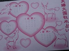 縁結び・夫婦円満で有名な夫婦大國社では水に浸すと文字が浮き出てくる水占いが人気です。ハートの絵馬も可愛いです。