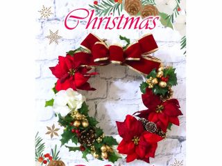 ◆アーティフィシャルフラワー(造花)のポインセチアのクリスマスリース◆当店限定カラーあり!瀬谷駅・大和駅から徒歩アクセスの好立地!