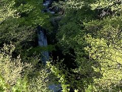 観瀑所から眺める滝は大きくはありませんが、訪問当時水量は多く勢いよく流れ落ちていました。