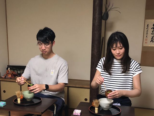 盆点前という略式のお点前で抹茶の点て方を習います。抹茶の量、茶筅の使い方、また正しい飲み方など日本人なら知っておきたい知識です。