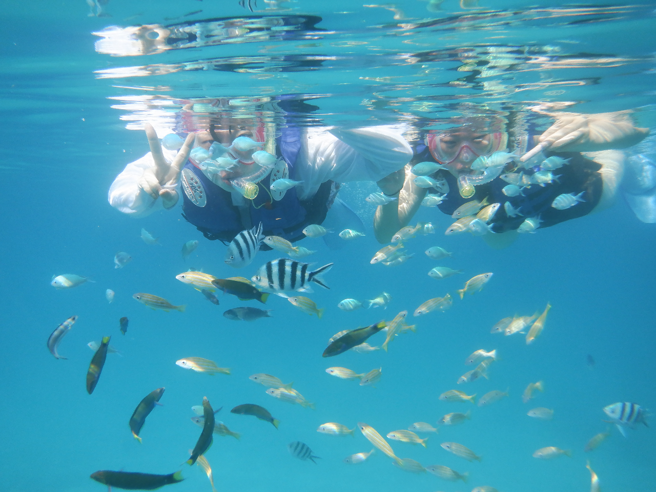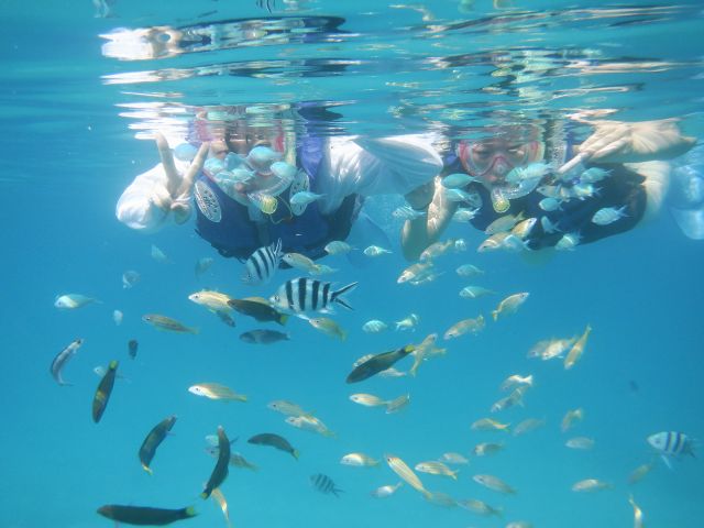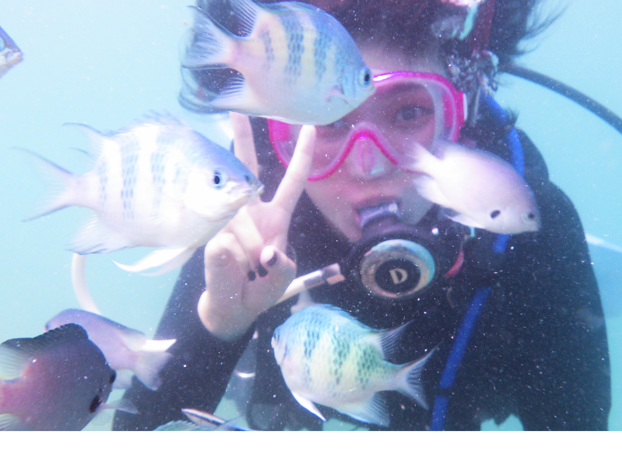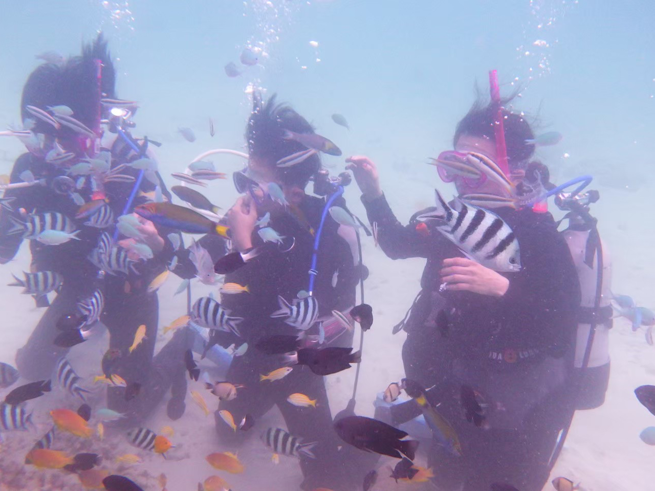 スクール開始後30分後には熱帯魚に囲まれ感動してますよ。