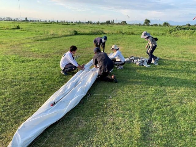 フライト後は、グライダーをスタート地点に戻す作業も体験の一部として行います。