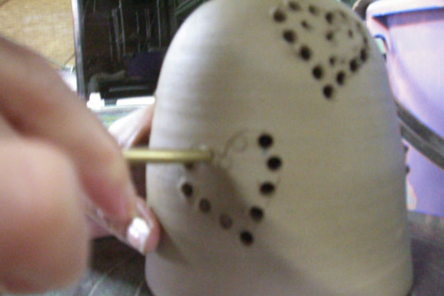 あとはポンスという道具で穴を空けデザインして頂きます。お友達同士やご家族で是非体験してみませんか♪陶芸教室・陶芸体験