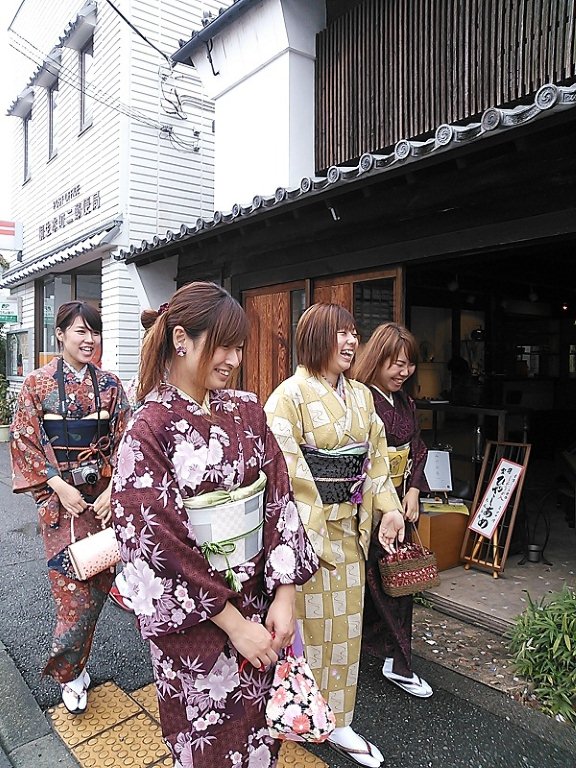 *桐生の街できものレンタル着付け体験*持ち歩きの巾着も付いているので手ぶらで楽々散策♪♪男性もOK。