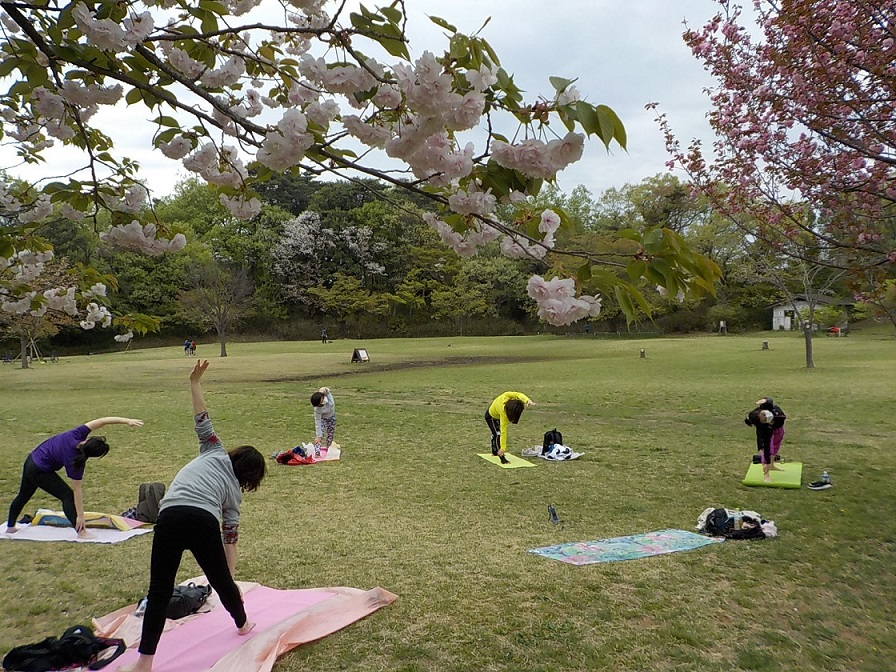 ・桜を見渡せる広場でのびのびヨガ!