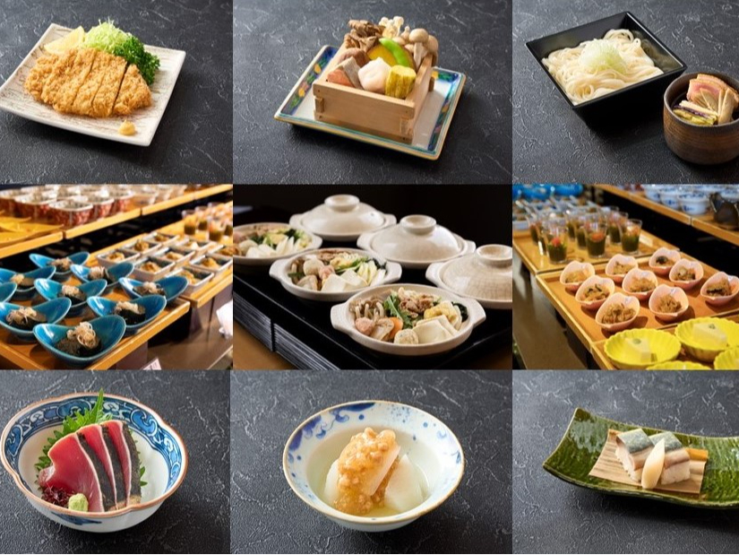 ホテル最上階からの絶景とともに、旬の食材を活かした和食ランチブッフェや会席料理やが楽しめます。
