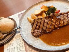 サラダとスープ・ステーキとパンと食後の飲み物とデザートがついたお得なセットでした。