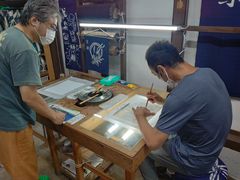 京都市右京区にあります、ローケツ染・職人体験やまもとです。Tシャツや暖簾など自分が好きなように染め上げることができます。