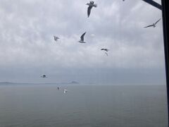 島原港から熊本港までの所要時間は1時間、雲仙岳を眺めながら有明海を渡ります。外国からの修学旅行生でしょうか、デッキに集まるカモメに菓子を与えて興じていました。