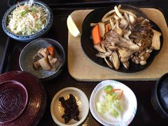 頼んだのはきのこバター定食と、別でまいたけ天ぷらを単品で。