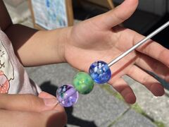 | 体験 | バーナーでガラス棒を溶かして、とんぼ玉(穴の開いたガラスビーズ)を作ることができます。