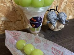 大粒のシャインマスカットパフェとシャインマスカット飴