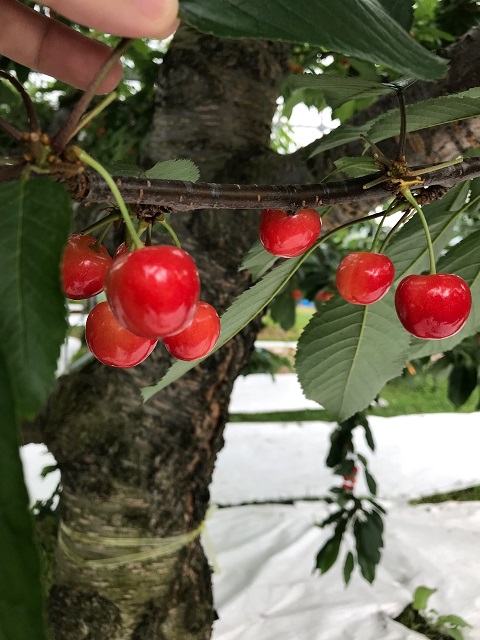 サクランボ狩り開始。入園してから30分間食べ放題です♪