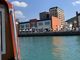 プラザ、旧税関前、倉庫、寺院、海峡の潮流掲示板、係留や停泊中の船
