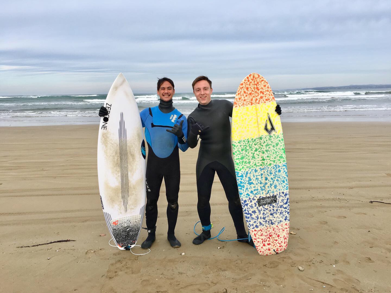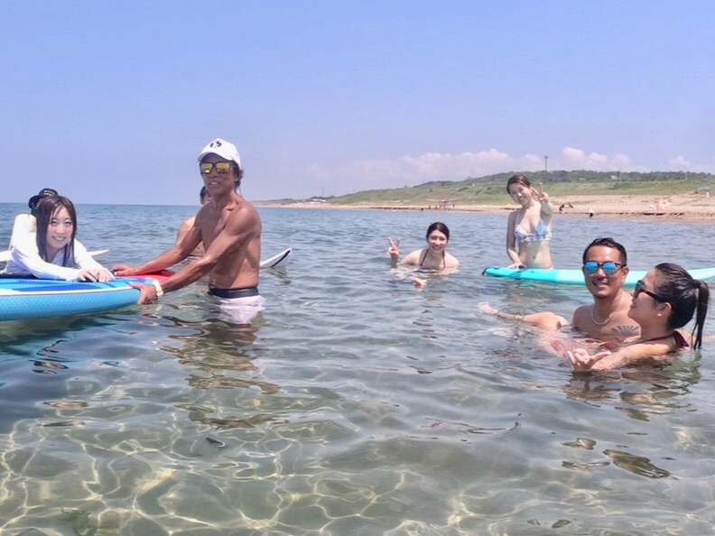 それから簡単にサーフィンの説明してから海に入っていただき2時間ほど後ろから波に乗れるようにアシストして行きます。