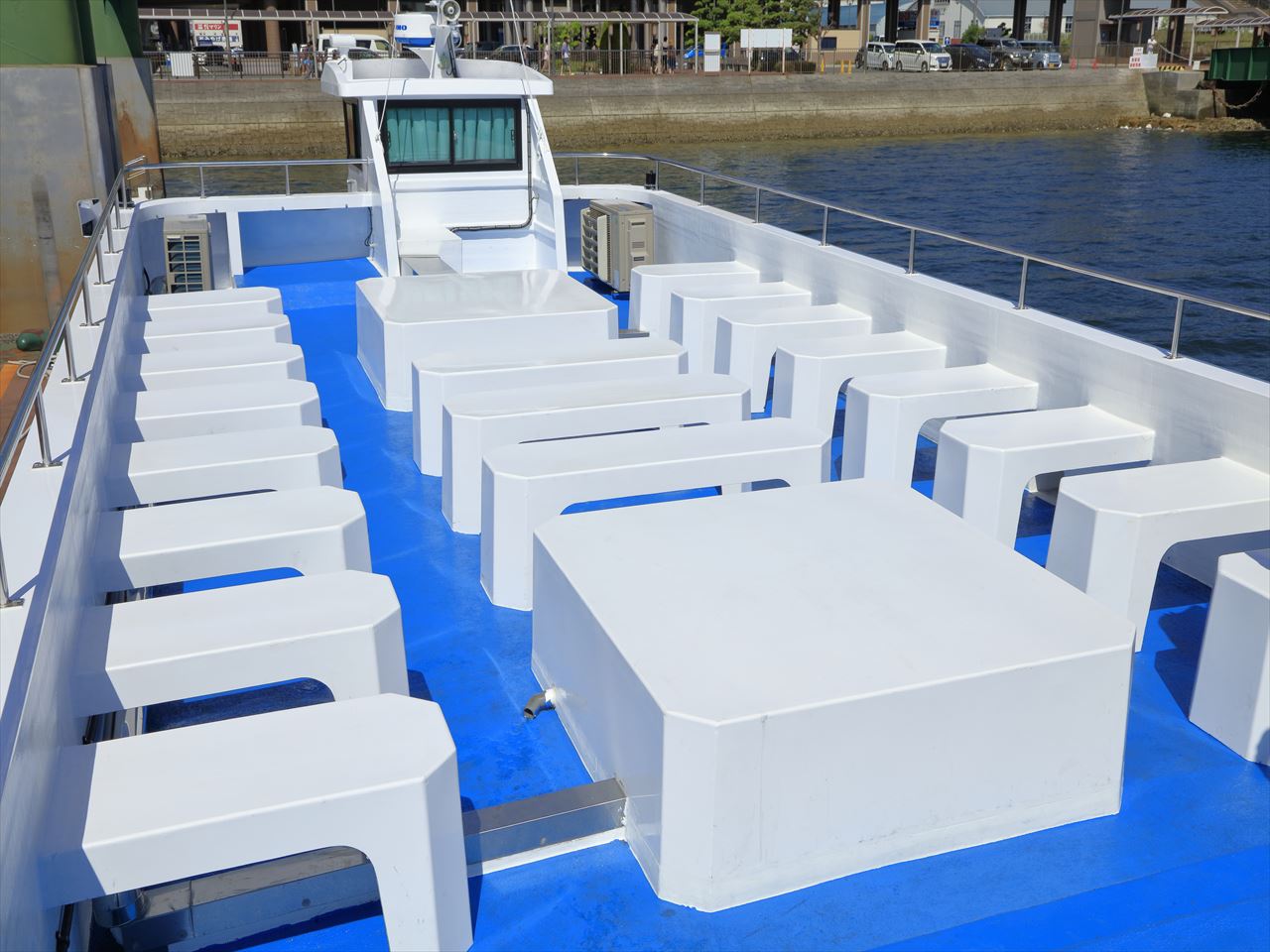 ・屋上オープンデッキを備えた「くれない5」に乗って、瀬戸内海の風を感じながらクルージングをお楽しみください★