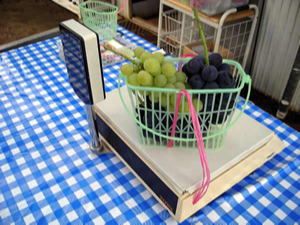 収穫されたぶどうを計量し、代金をお支払いいただきます♪