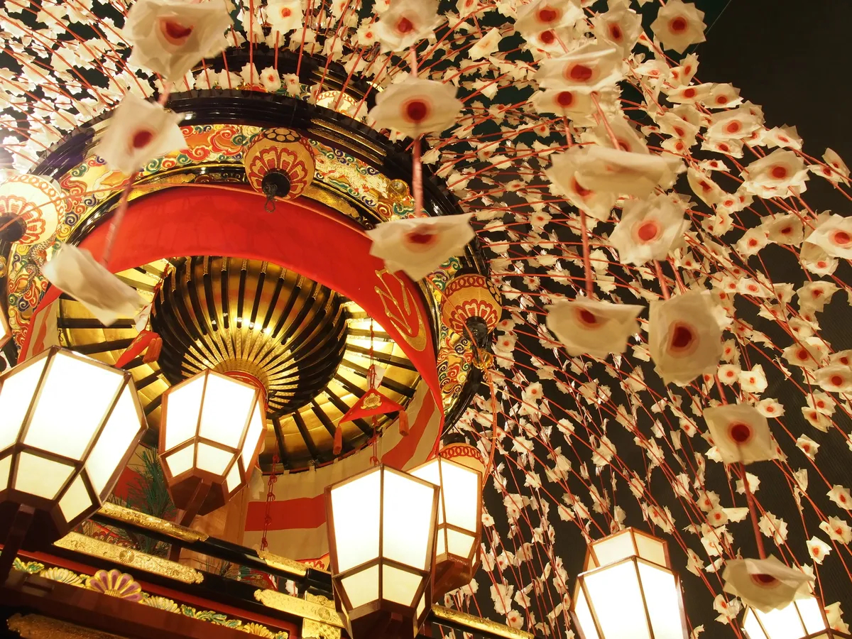 まつり会館に展示されている笠鉾と屋台はその煌びやかな見た目に圧倒されるはずです。