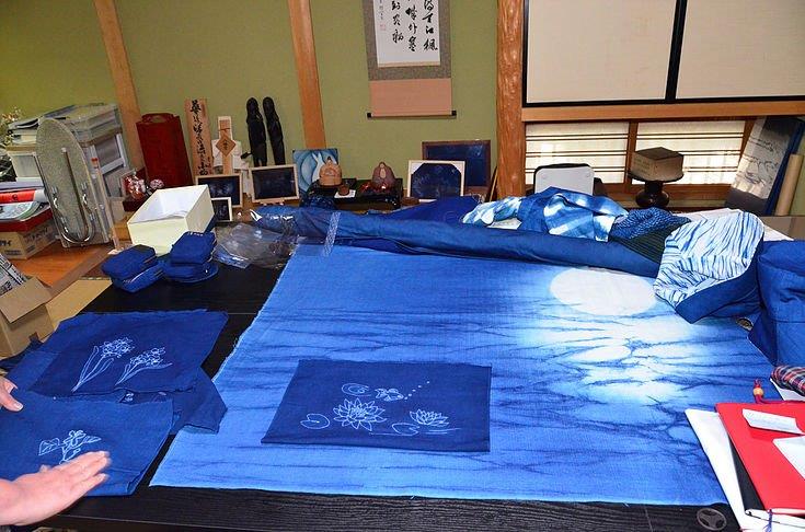 藍染の柄がこんなにあるとは、正直びっくりしました。見せて頂いたサンプルはどれも素敵で私達素人に作れるのか心配でしたが、とても親切に教えて頂き、気持ち良く褒めてくださるので何とか形になったかなぁ…と思って完成品を見たら、本当に