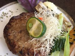 シークァーサーのソースのハンバーグです。美味しかったです!お野菜も沖縄感が良かったですよ。