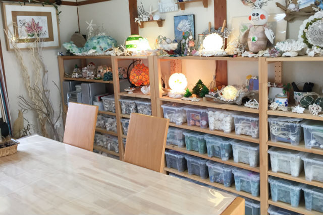 シーグラスや貝殻の隙間から柔らかくこぼれる光が癒しの空間を作ってくれますよ
