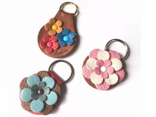 ◆3歳からの10分体験!お花キーホルダー 洗える天然鹿革◆小さなお子様から体験OK★美作の里山のぬくもり感じる、やわらかな肌触り♪ファミリー・カップルにおすすめ☆ペットのネームタグにも!