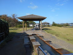 溶岩なぎさ遊歩道を歩いて戻ったら、溶岩なぎさ公園の足湯で一休み。足湯の長さは何と100mも有り、密になる事も無くゆったりと錦江湾を眺めながら足湯を味わえます。