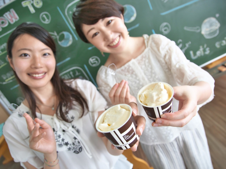 ▼自分たちで作ったアイスの味は格別。ご家族や友達、カップルに大人気!牧場・酪農体験