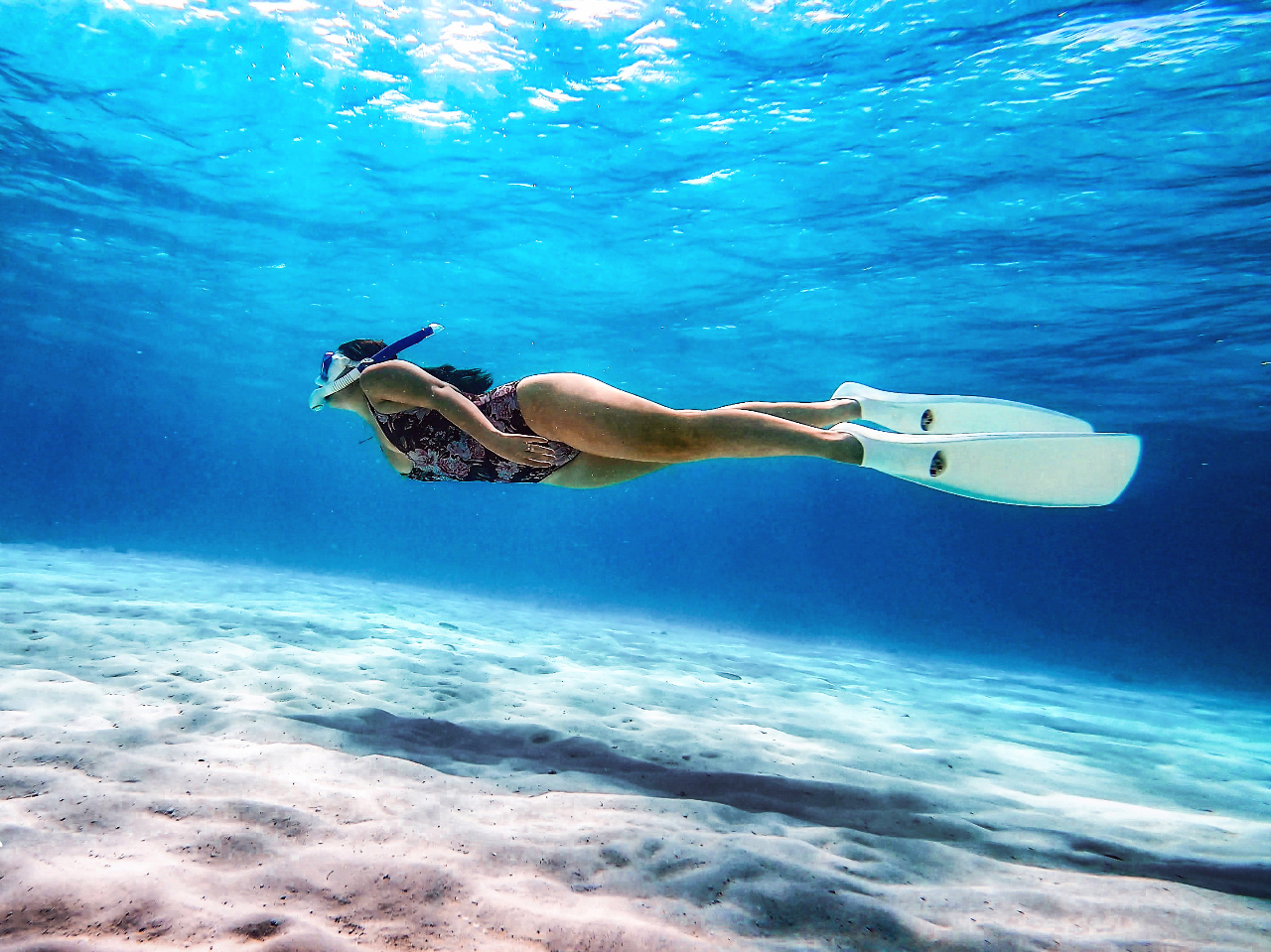 当店のシュノーケルマスクは光の乱反射、紫外線を軽減させ