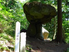 大石で造った古代人の墓とも言われているが、武蔵坊弁慶が足を引っ掛けて台石に笠石を乗せたという伝説もあります。