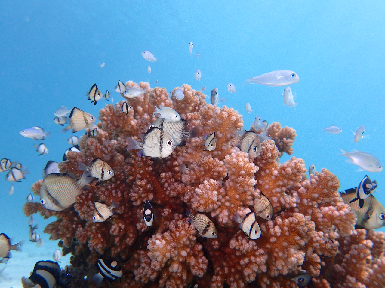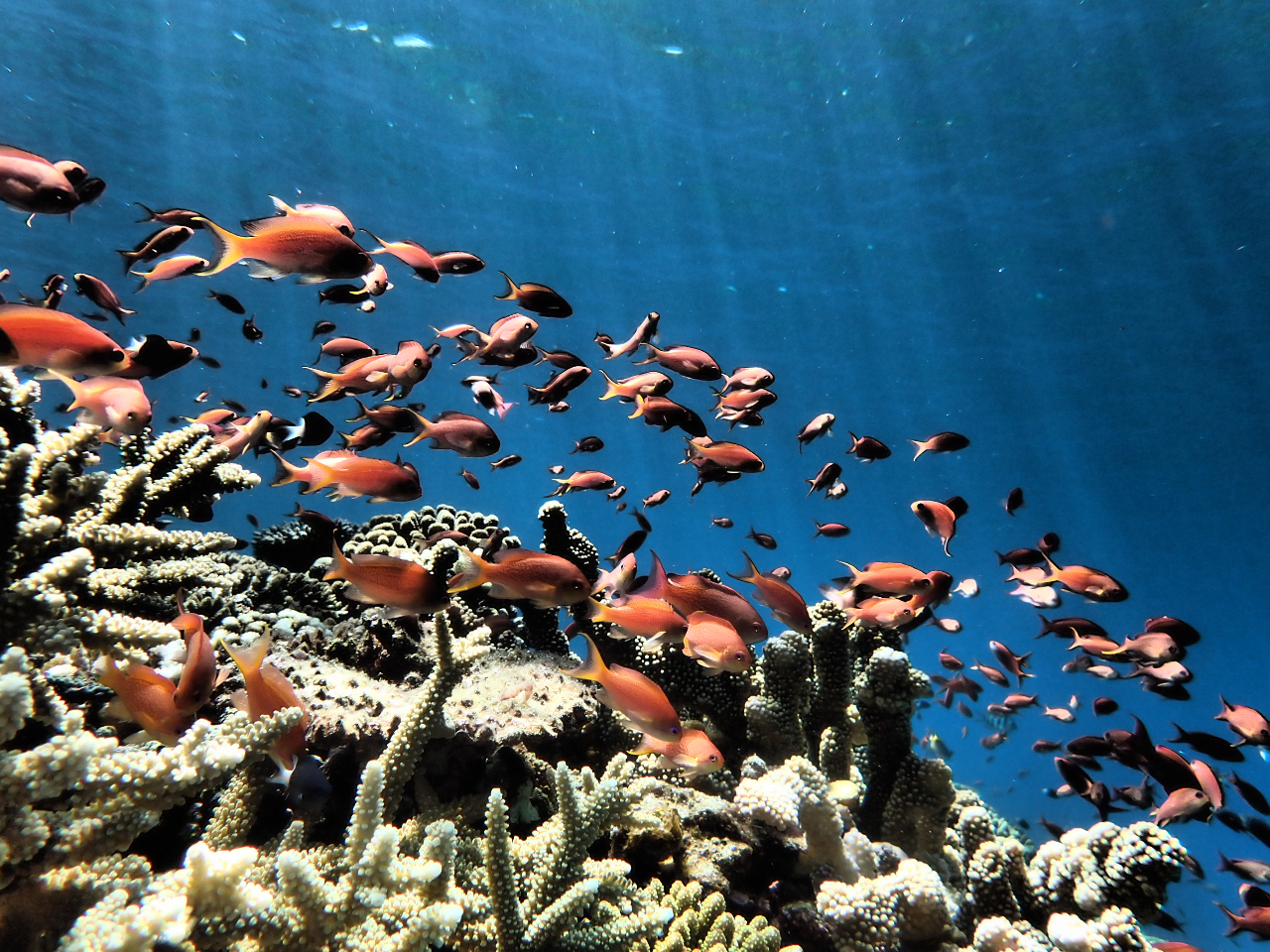 ┗珊瑚も、熱帯魚も魚群も豊富!