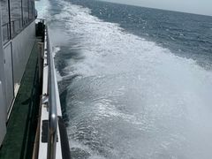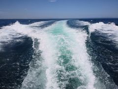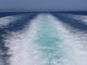 航跡の水の色かとてもきれい。小さな虹も船の後ろに出てました。